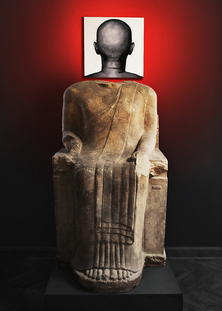 Константин Худяков. «Рождение Венеры-4». 2008-2017. Холст. Ультра-хром-принт. Между слепками статуи оратора Демосфена и надгробия тирана Аристиона.