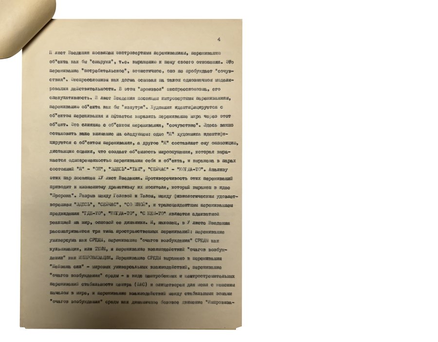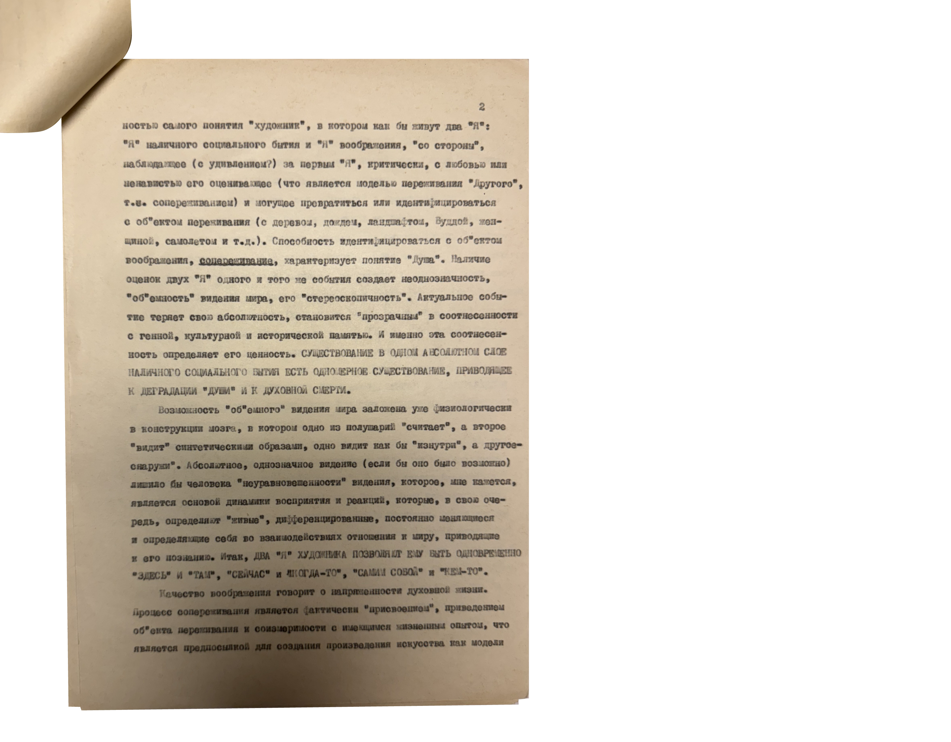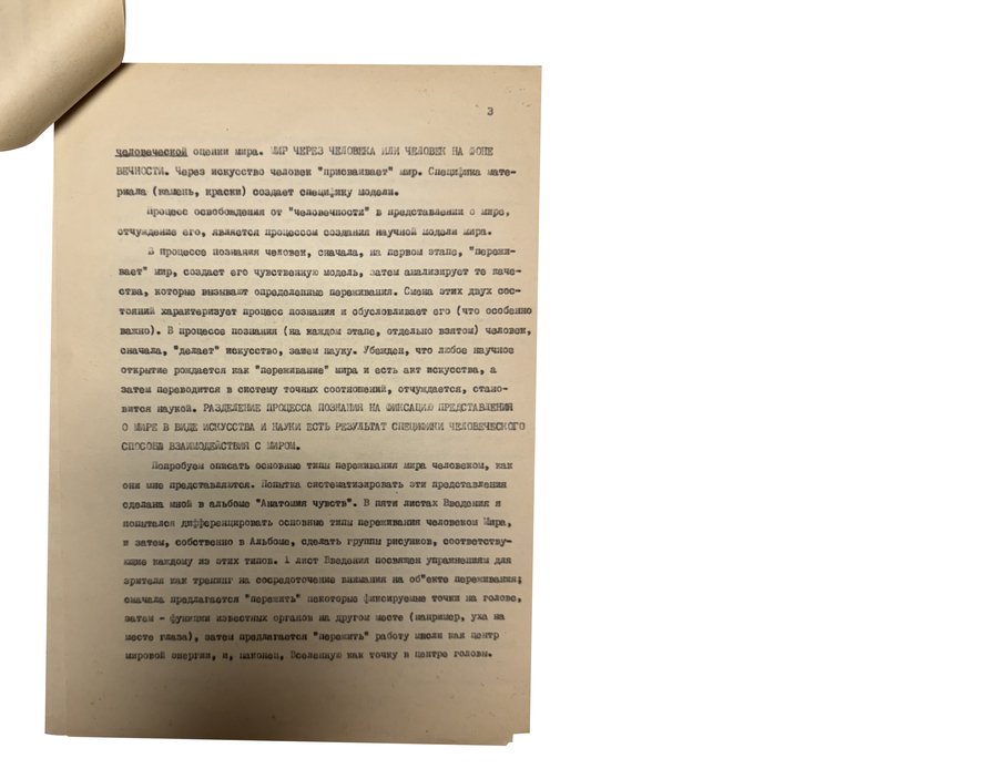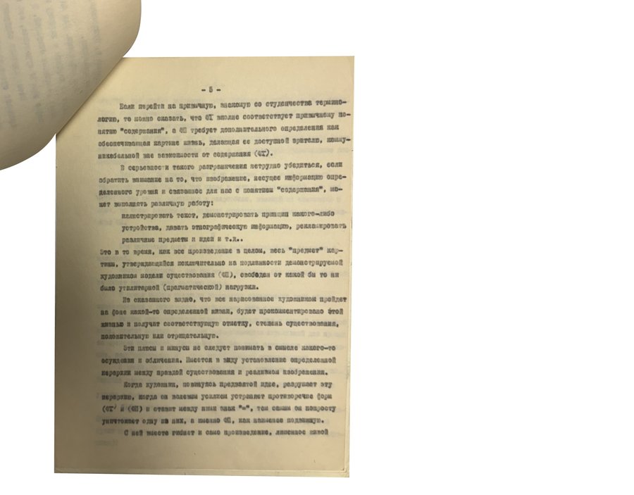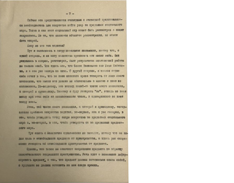 Текст Э. Булатова с авторской подписью «Об отношении Малевича к пространству». 1981. Машинопись. 8 листов. 29,8×21 см
