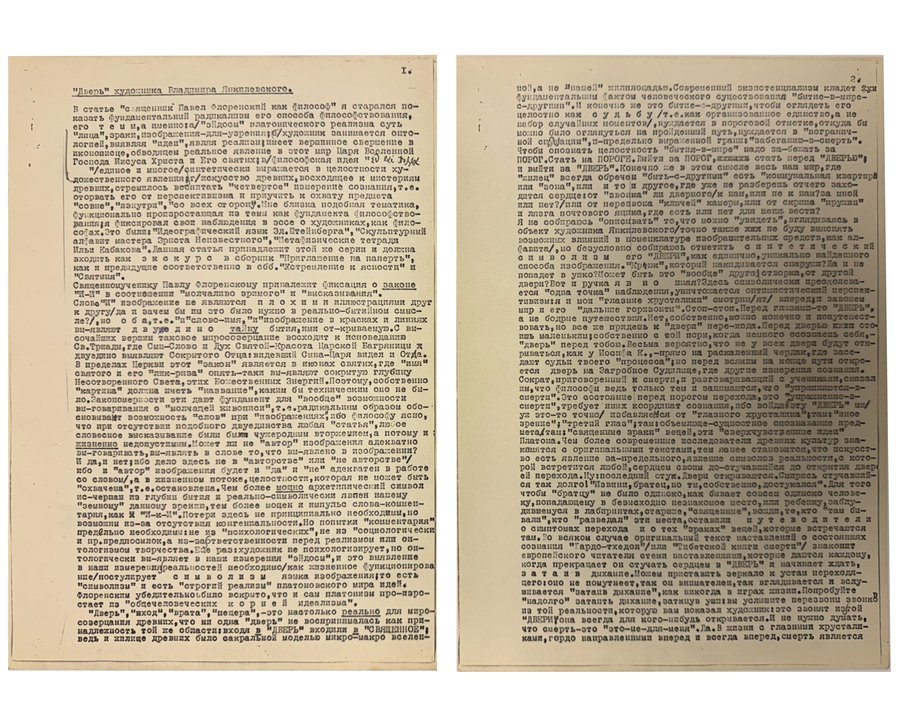 Текст Евгения Шифферса «Дверь» художника Владимира Янкилевского» на 6 листах. 29,8×21 см