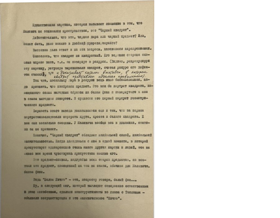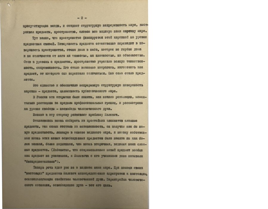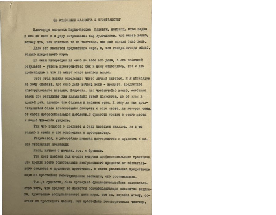 Текст Эрика Булатова «Об отношении Малевича к пространству»