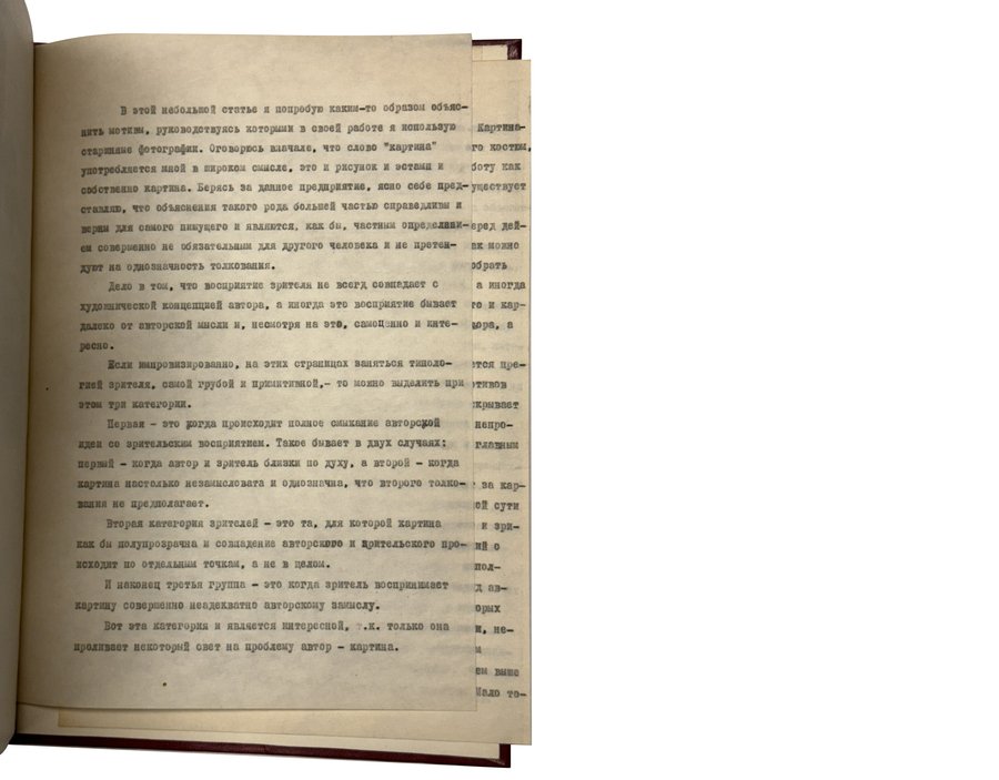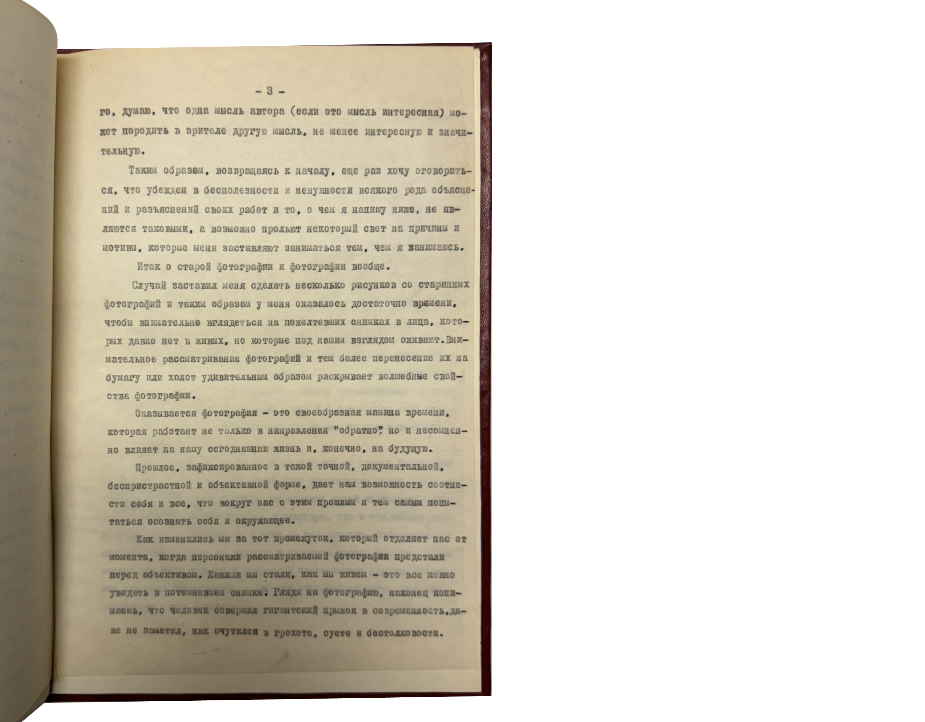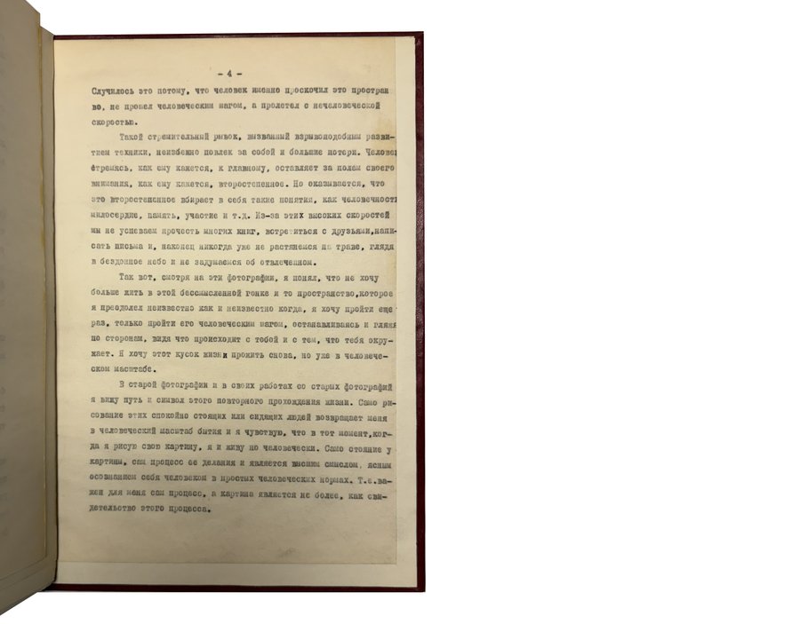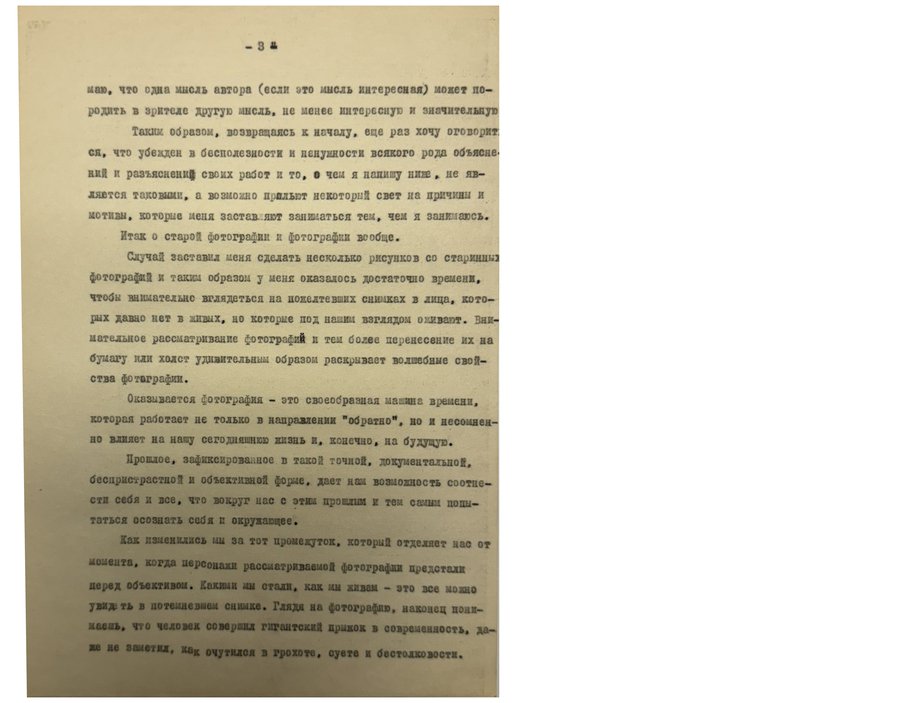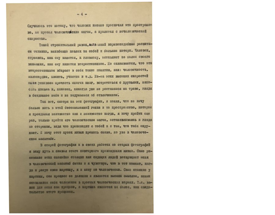 4 листа статьи Э. Гроховского с рассуждением о роли старой фотографии в его творчестве. Экземпляр той же статьи, что и в книге «Э.Гороховский» 29,8×21 см
