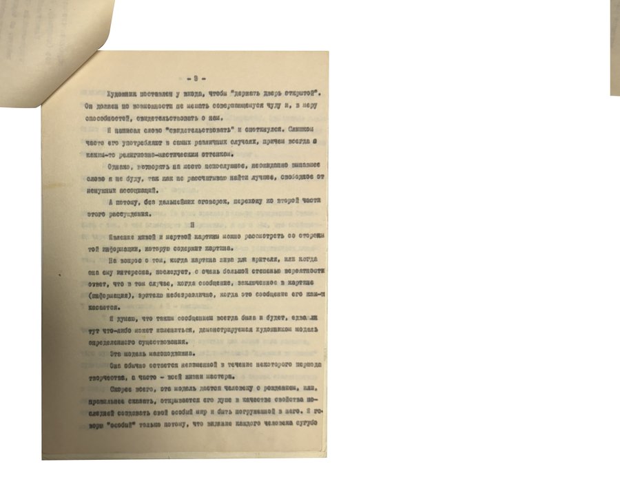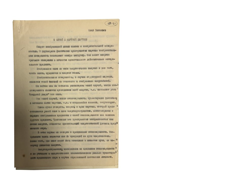 Олег Васильев. О живой и мертвой картине. (январь. 1981) Машинопись. 10 страниц, 7 экземпляров. 29,8×21 см
