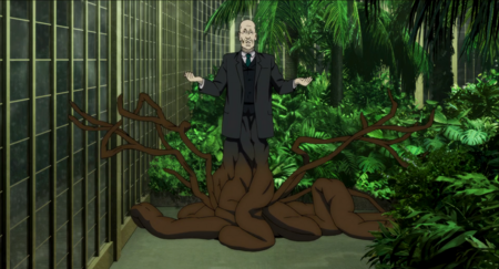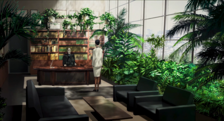 Примечательно, что основная философия героя также прослеживается в его окружении: консервативное убранство кабинета, растения, объем которых растет от сцены к сцене, старый особняк вместо современного дома.