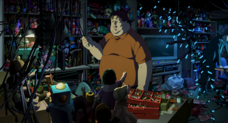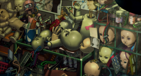 Один из героев, Токита не хочет принимать правды и погружается в свой метод эскапизма — создание приборов DC mini. Его комната заполнена от пола до потолка, в ней темно, даже стул ему не по размеру. Героя описывают, как ребёнка в теле гения, прячущегося в этом огромном неповоротливом теле.