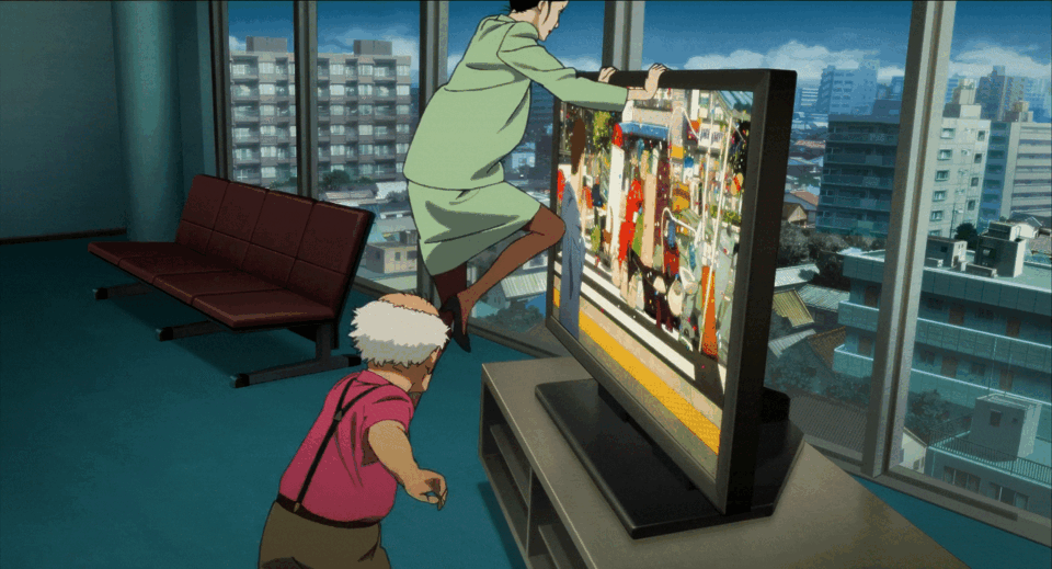Или, чтобы совершить переход из одного сна в другой. Часто в «Паприке» это сглаживается добавлением зума. То есть приближение или отдаление масштаба видеоряда.