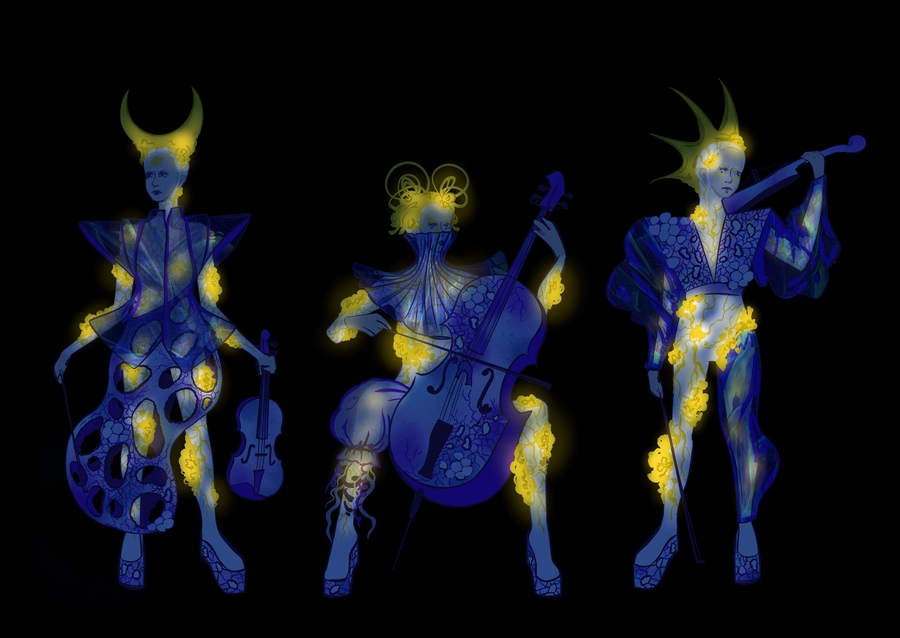 Вдохновение для костюмов: — Плесневые грибы, слизевики, грибоподобные организмы — Rave culture, glam rock — Глубоководные морские существа, биолюминисценция — Представления о пришельцах из старых фантастических фильмов