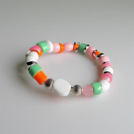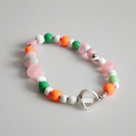 prompt: strange bracelet in the style of the 2000s, minimalism, more details, main colors: white, pink, orange, light green