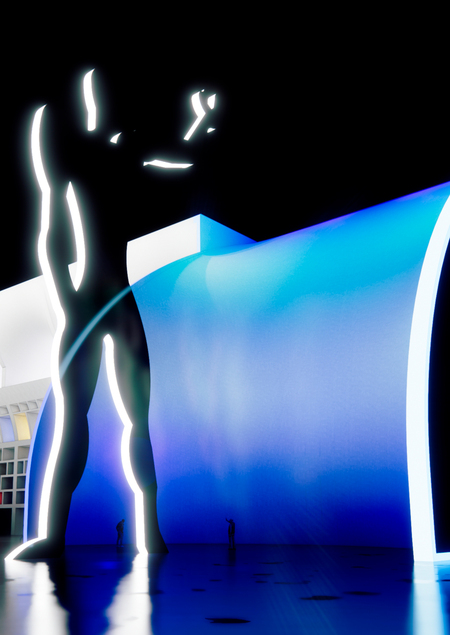 Одним из ключевых «индийских проектов» Ле Корбюзье является «Дворец Юстиции» в Чандигархе. В моем фасаде воплощён главный фасад здания, из которого буквально вырываются мощные бетонные волны, накрывающие «Большой манеж» — сооружение эпохи классицизма. Эта динамичная форма символизирует переход от традиционной архитектуры к новой эре — веку модернизма, олицетворённому смелыми идеями Ле Корбюзье.