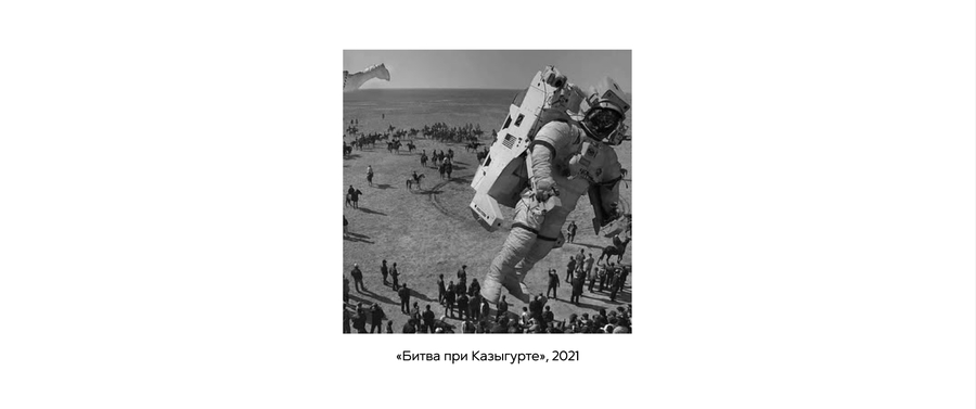 4. Кокпар — игра-состязание тюркских народов — становится символом обретения силы и опоры, в которой художник находит утерянное и ощущает связь с собой.