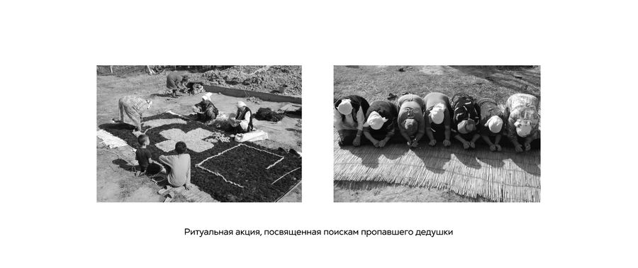 1. Поиски утраченных корней — история о родине, рассказанная отцом, попытки нахождения пропавшего без вести дедушки и проведение ритуальной акции художником и родственниками.