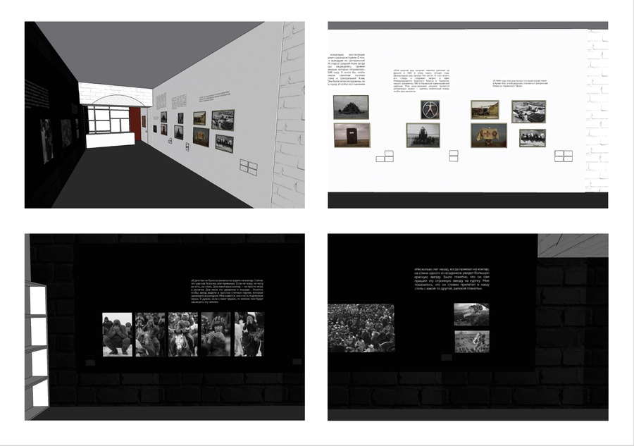 Камерная галерея, расположенная в застроенной проездной арке, становится метафорой пограничного состояния, символизируя переход из точки А в точку Б. Пространство разделено на две противоположные части: с одной стороны — белая стена, символ чистоты и незаполненности, с другой — черная, отражающая процессы обретения и взросления.