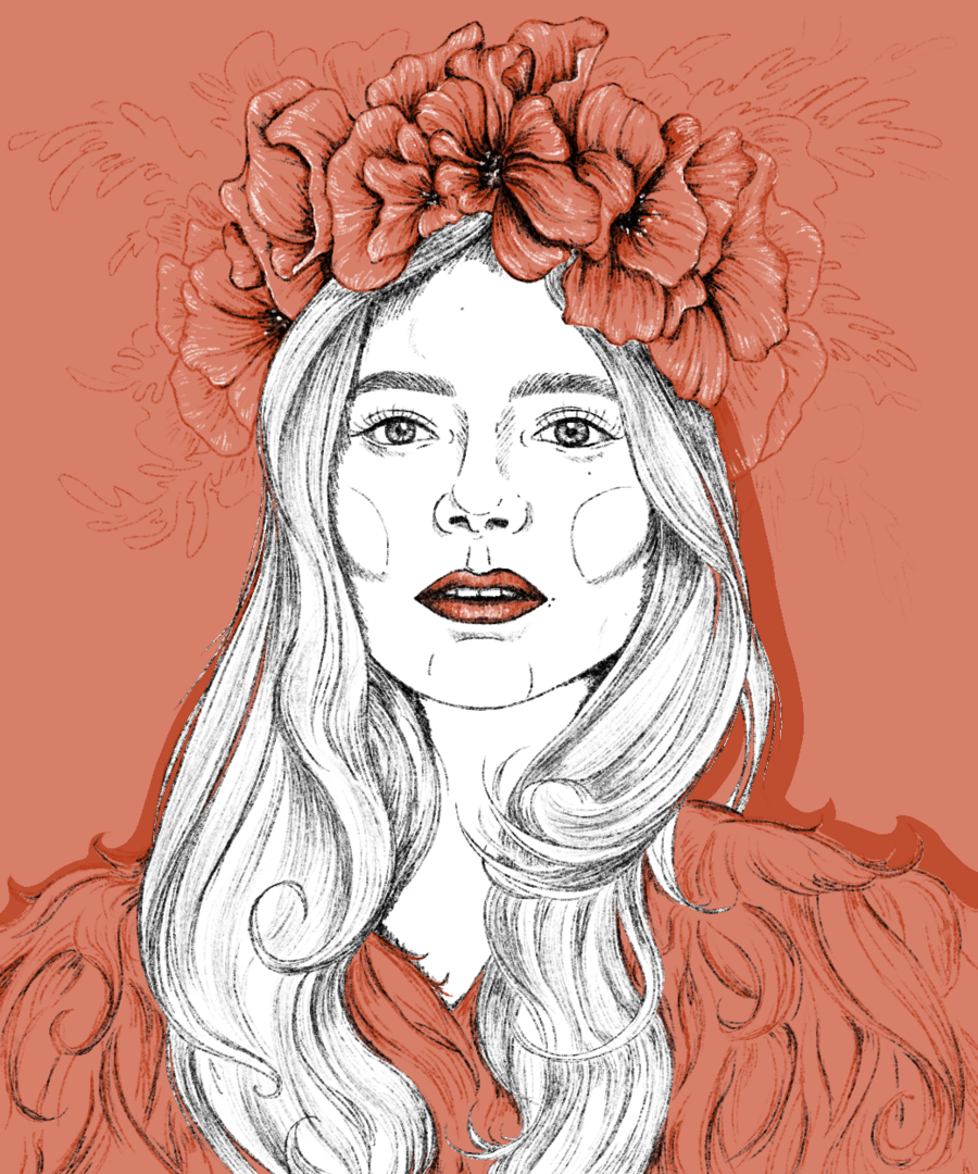 Серия портретов женщин, важной частью образов которых являются цветы в волосах.