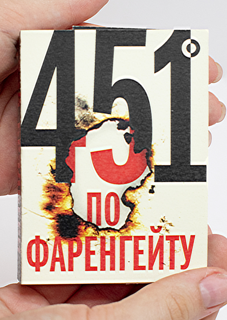 Книга имеет два корешка и маленький размер, создавая визуальное сходство с коробком спичек.