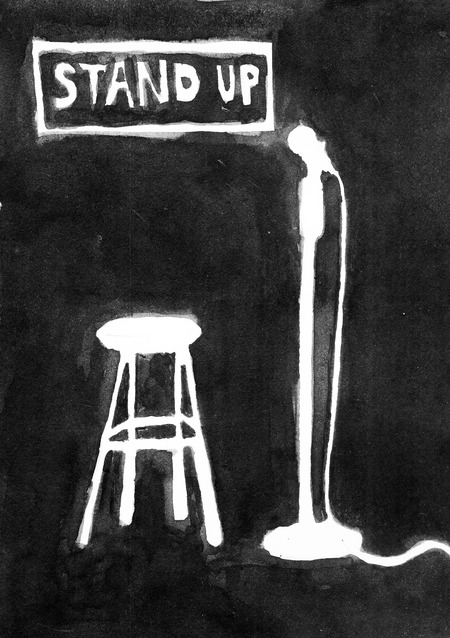 Уже некоторое время я увлекаюсь стендапом и иногда хожу на открытые микрофоны не как зритель, но как комик. В своем проекте я хотела показать ту сторону комедии, которая обычно скрыта от зрителя. Процесс написание монолога, волнение перед выходом на сцену, нервное повторение своего материала — все, что остается скрыто от простого зрителя.