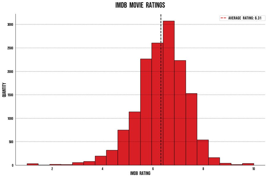 Средний рейтинг всех фильмов составил 6.3/10, что не так уж и плохо. Большинство фильмов получают рейтинги 5–7, что неудивительно при таких объемах производства, когда сложно уследить за качеством продукции.
