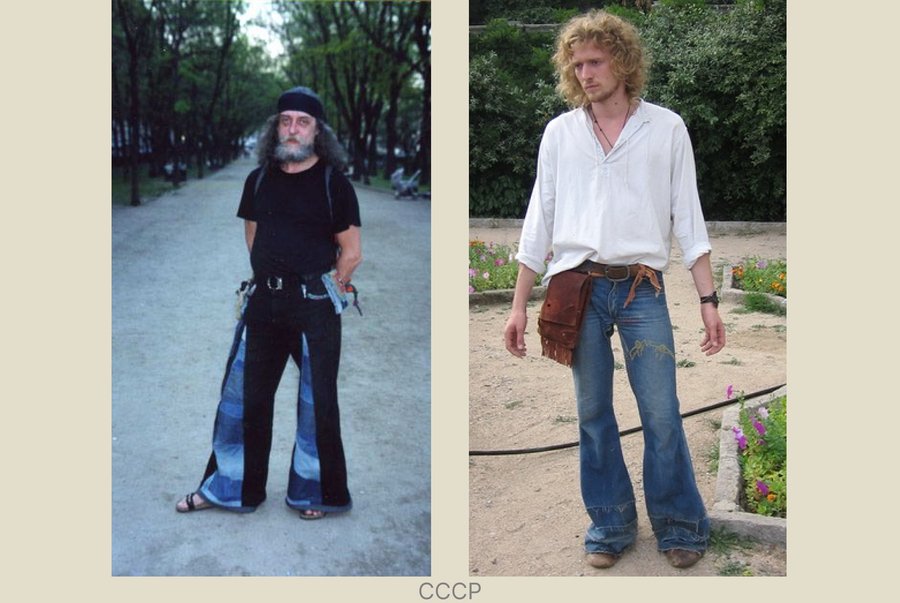 Джинсы были дефицитным товаром в СССР, поэтому советские хиппи предпочитали носить широкие хлопчатобумажные брюки, окрашенные в васильковый цвет. Такие джинсы назывались «море разливное».