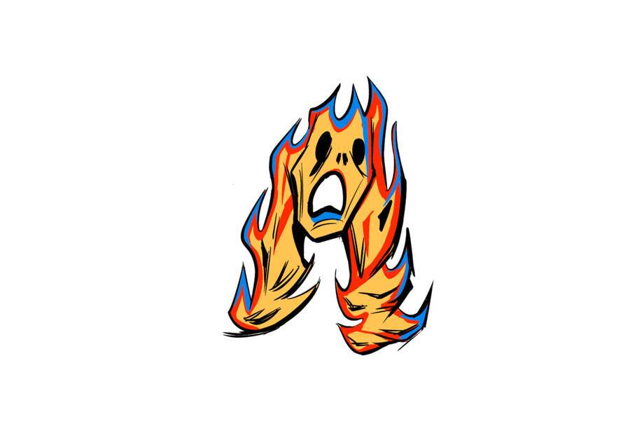 Буквы в цветах огня, как пламенная душа музыканта. Дерзкие четкие чернильные контуры, угловатость как брутальность и строгость.