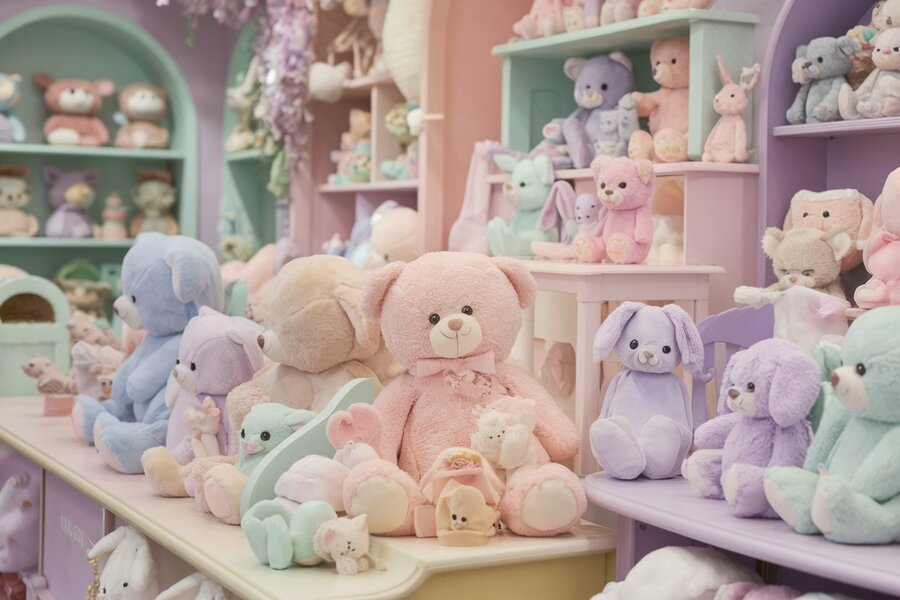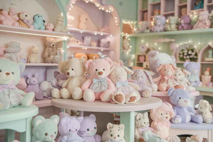 Сгенерировано в ideogram. Promt: create an image of a charming toy store filled with toys of cute animals, all in soft pastel colors like light pink, baby blue, lavender, and mint green. The shelves are lined with teddy bears, bunnies, kittens, and little forest creatures, each one inviting. The atmosphere is warm, cozy, and whimsical, with delicate lighting that enhances the pastel tones of the toys. The overall vibe should be playful, gentle, and comforting, like a dreamlike wonderland for children.