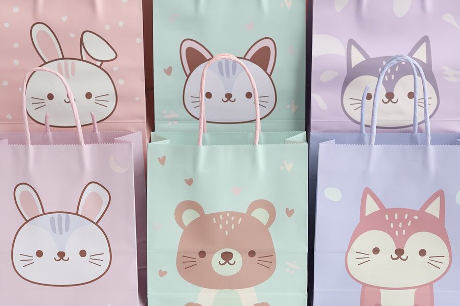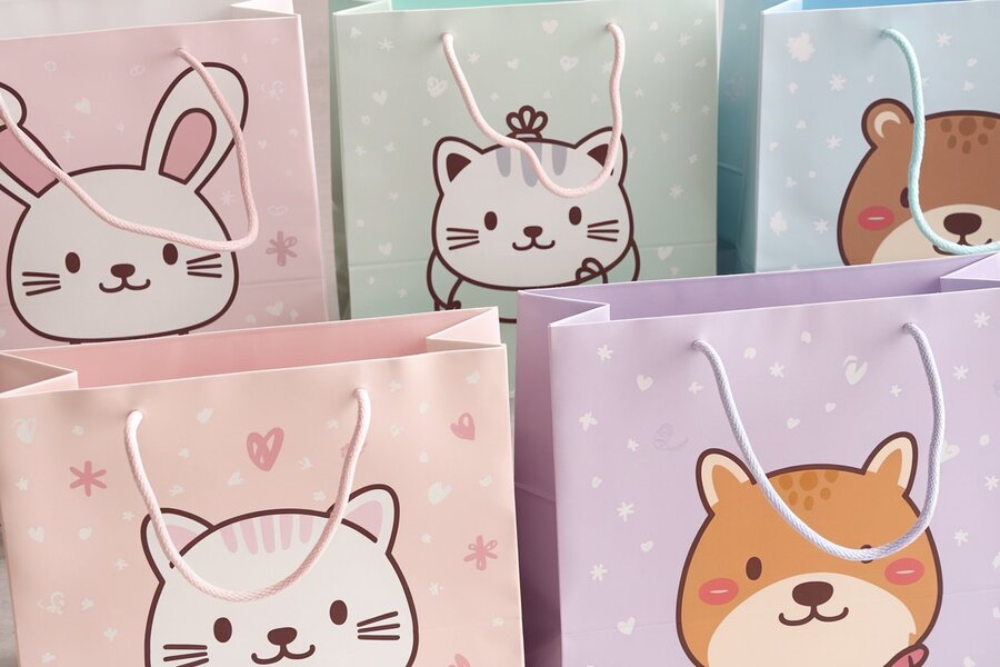 Сгенерировано в ideogram. Promt: Create an image of a set of paper bags featuring cute animal illustrations in soft pastel colors. Each bag should showcase different animals, like a bunny, a kitten, a bear, and a fox, all with endearing, cartoonish faces. The colors should include shades of light pink, mint green, baby blue, and lavender, with gentle patterns like hearts, stars, and polka dots in the background. The bags should have a simple, clean design with a light, airy feel, perfect for a children’s boutique or toy store. The handles should be soft and matching in color, adding to the overall cute and charming aesthetic.
