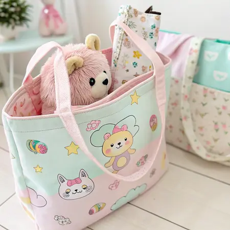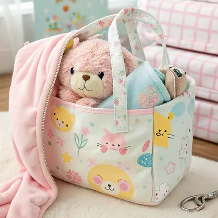 Сгенерировано в recraft. Promt: a pastel colored shopper with cute animals, in which contains a plush toy (изображение 1). Promt: a pastel colored bag with cute animals, in which contains a plush toy (изображение 2).