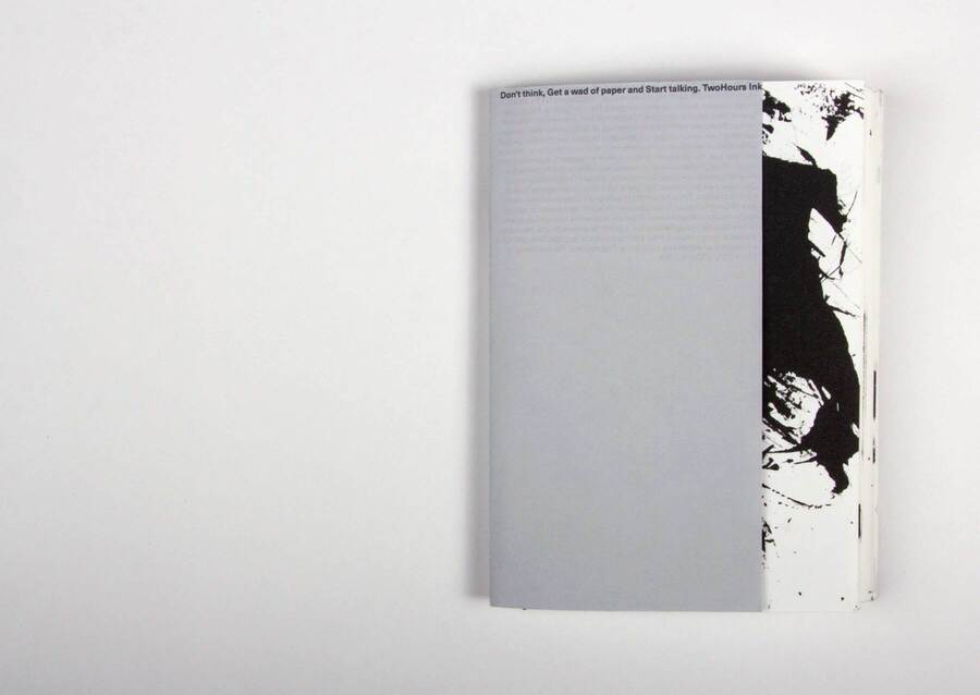 Monochromatic, minimalist poster for the art project TwoHours. The background is an expressive black and white ink drawing, with lively, spontaneous strokes that create a sense of movement and performative process. The structure of the image is chaotic yet harmonious, conveying the energy of the creative act. The visual style is experimental and exploratory, emphasizing the process rather than the end result.