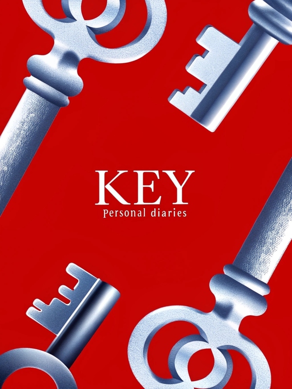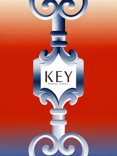 Промпт: Ornate metal-style advertising poster for the KEY personal diaries brand