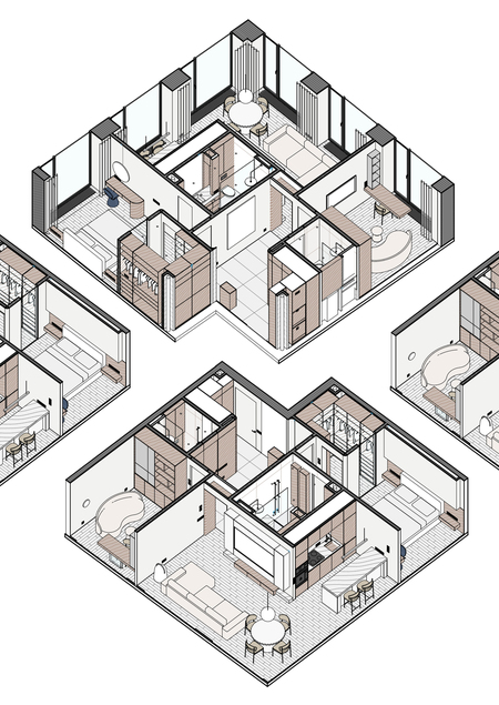 Дизайн-проект интерьера квартиры был выполнен в программе Revit. В рамках курса мы с нуля разрабатывали проект на основе реального объекта, осваивая основные инструменты и принципы работы в Revit.