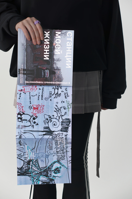 Смысл зина заключается в моём рассказе о своей жизни через сканы станций. Поэтому в обложках я хотела показать именно это. На передней я стою со сканером, а на задней — сканируют уже меня.
