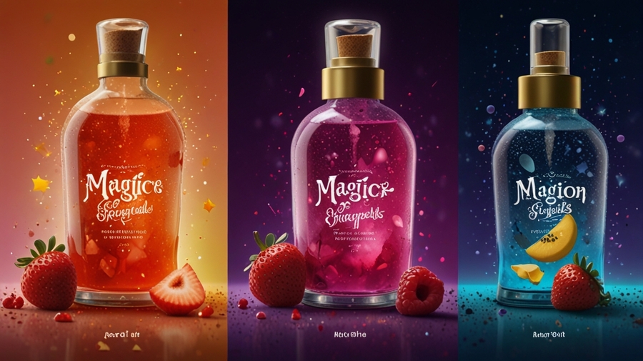 промпт для 1 и 3 изображений: 3d octane render of heart-shaped, star-shaped and other unique, fantastical shapes flasks in vibrant colors. Add whimsical details such as cork stoppers with tiny charms on pink and purple gradient background with sparkles for «Magic Sparks,» a brand specializing in children’s drink-making magic potions. The designs should be colorful, playful, and imaginative, appealing to a young audience. Results should contain pink, purple, blue and gold colours