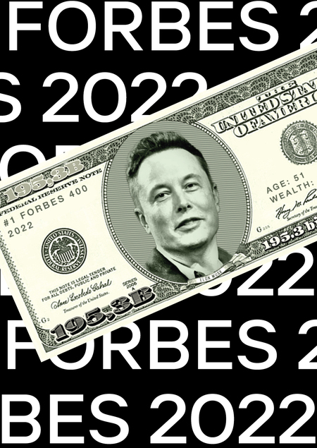 Перевёрстка долларовых купюр для размещения на них информации о самых богатых людях по мнению Forbes. Концепция обыгрывает простоту взглядов обывателей на подобные списки.