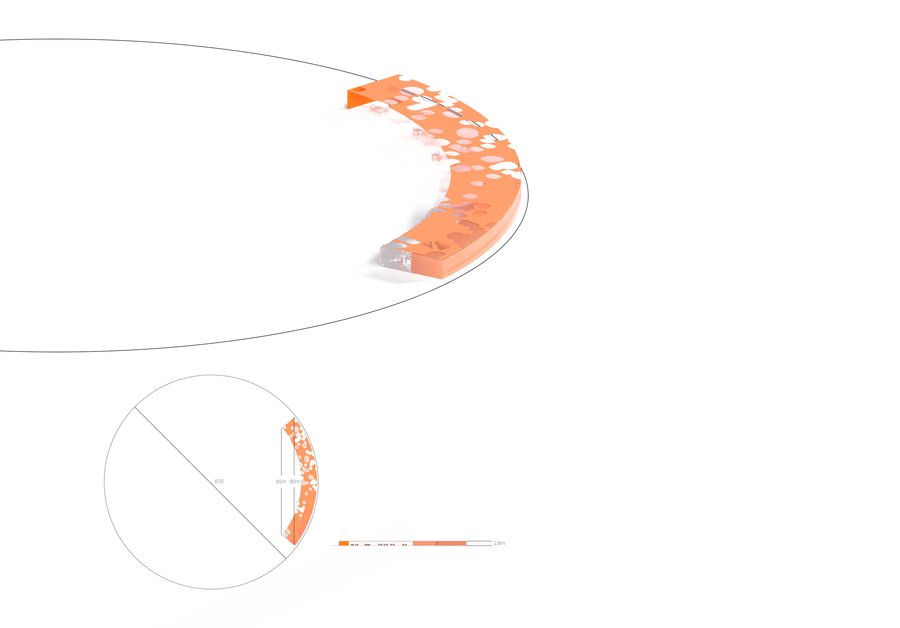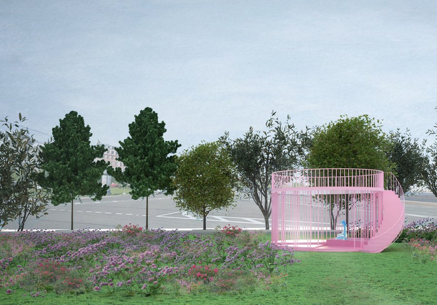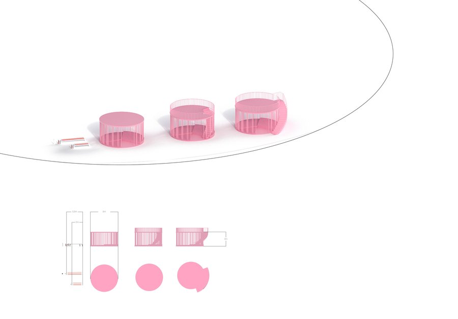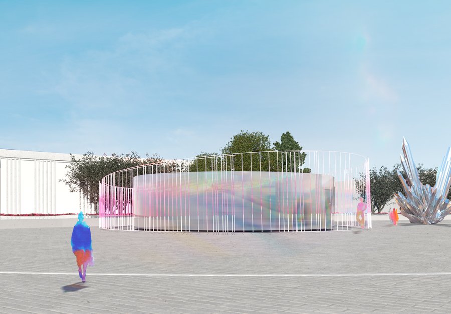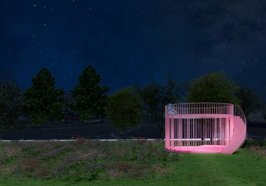Выставочный павильон предназначен для экспозиции световых инсталляций художников. Площадь вокруг позволяет выставлять работы творцов с стилем или направлением, схожим с Робером Делоне.