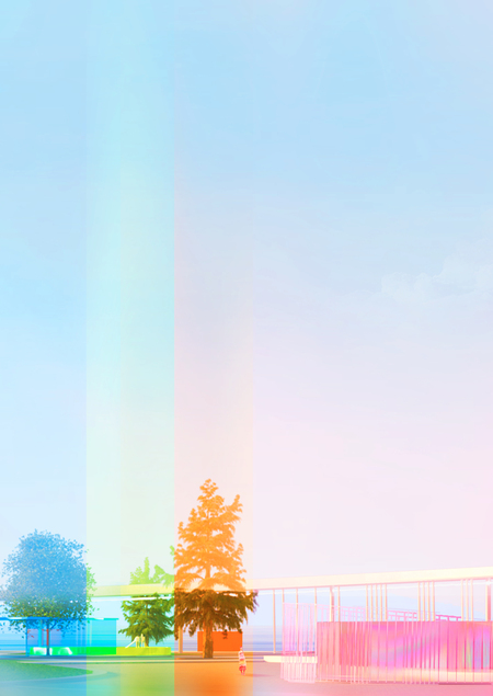 Парковое пространство сочетает в себе два элемента (свет и воздух), с которыми чаще всего работал Робер Делоне в живописи, а также при создании павильонов и объемных панно. Элемент света отражен в цветовом решении парка, а воздушность подчеркивают структуры колонн эстакады и малых архитектурных форм.
