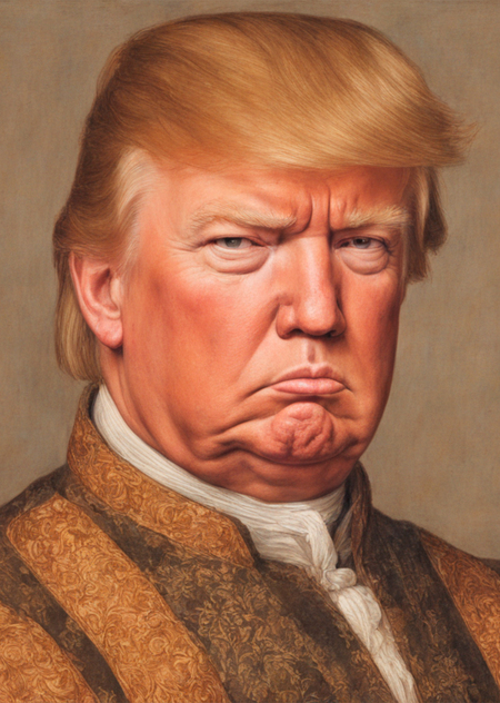Нейросеть смогал передать следующие особенности стиля: 1. Киароскуро (резкие световые акценты и глубокие тени, особенно в портретах и натюрмортах. Свет часто направлен слева сверху) 2. Фактура тканей и материальность (особенно на портрете Путина) — бархат, шёлк, парча, льняные сорочки, мех. Детализация вышивки, кружев и украшений. 3. Нейросеть сумела уловить типичные для Ренессанса пропорции лица: высокие лбы, прямые носы, мягкие, «задумчивые» взгляды. 4. Воздушная перспектива: в пейзажах удачно переданы мягкие, размытые очертания дальнего плана, постепенное «потускнение» цвета. 5. Использованы тёплые землистые тона — охра, умбра, терракота, приглушённые синие и зелёные оттенки.