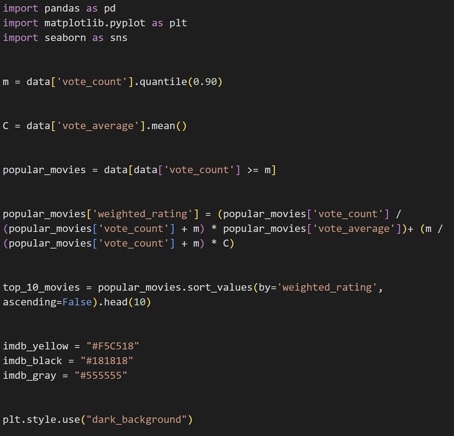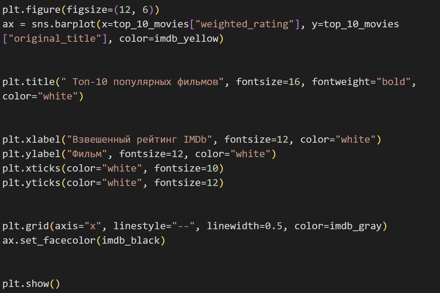 В качестве визуального решения я решила выбрать стиль оформления инфографики сайта с крупнейшей в мире базой данных о кинематографе — IMDb, а именно цветовую палитру: желтый, черный и белый для стилизации графиков.