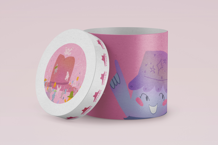Запрос для ChatGPT: Напиши промт на английском для генерации сюжета: коробка для шляпы шляпного магазина «Трилби». он должен выглядеть богато, но при этом весело и непринужденно, со смешными шляпами.