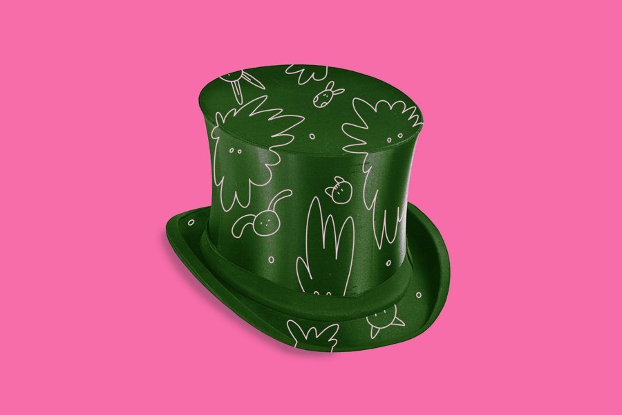 Promt: Create a green hat cylinder with ears, the background is simple and monochrome.