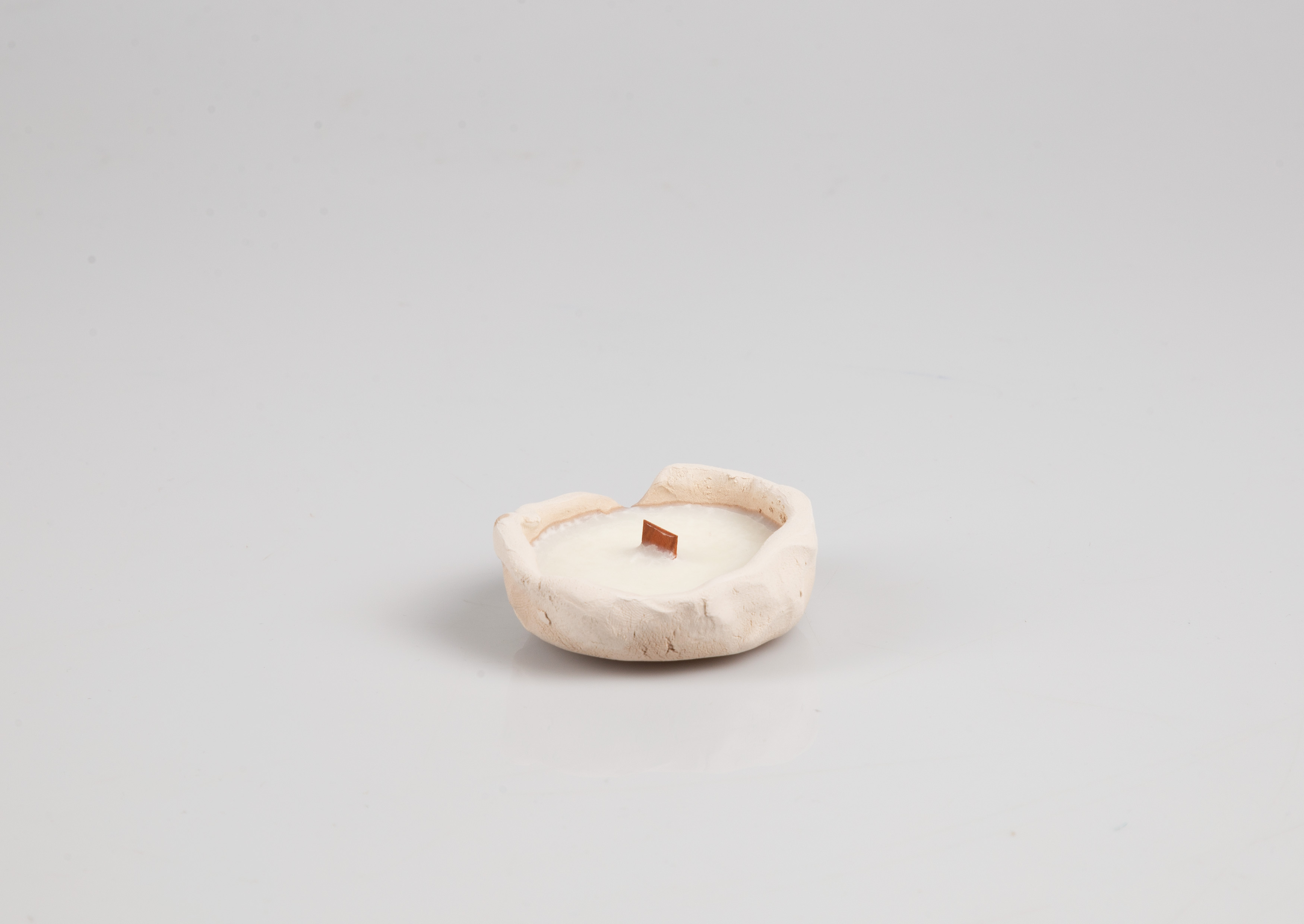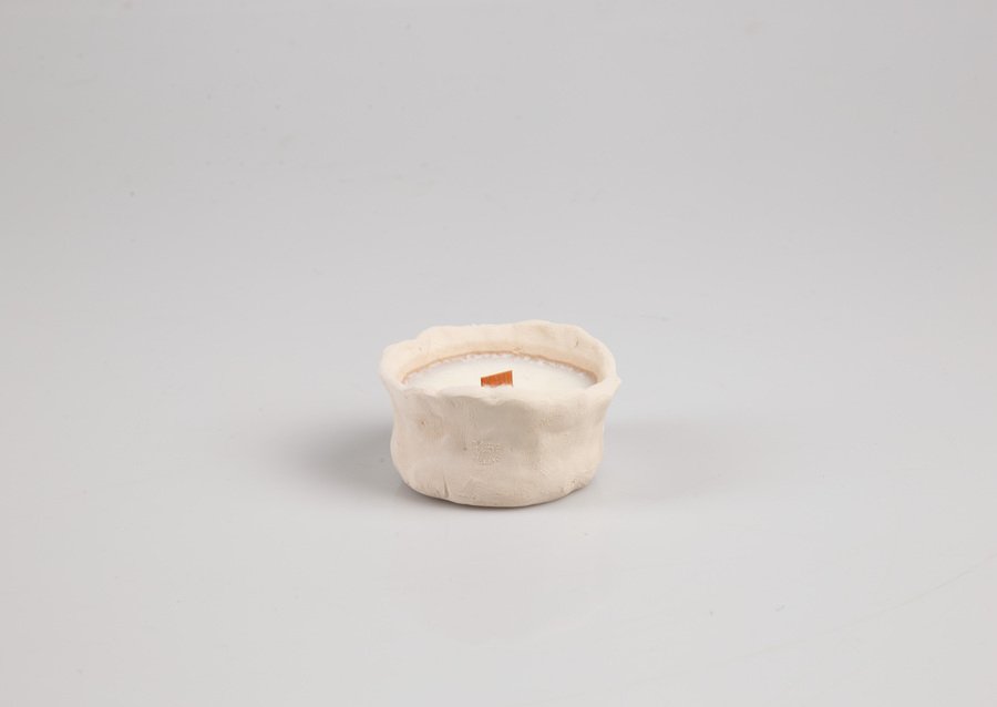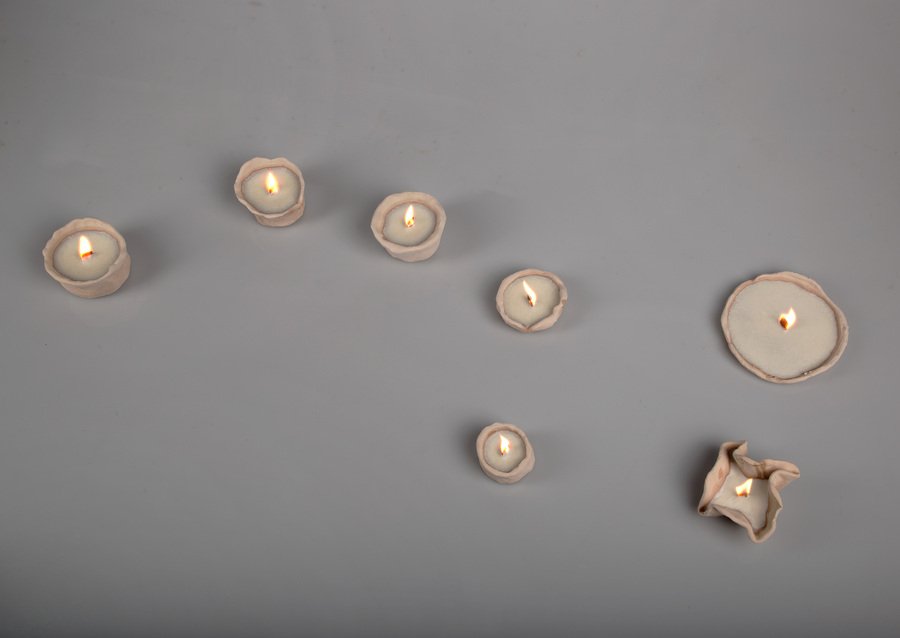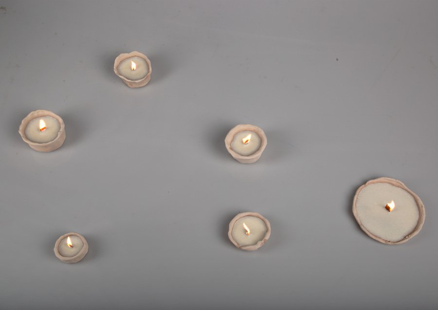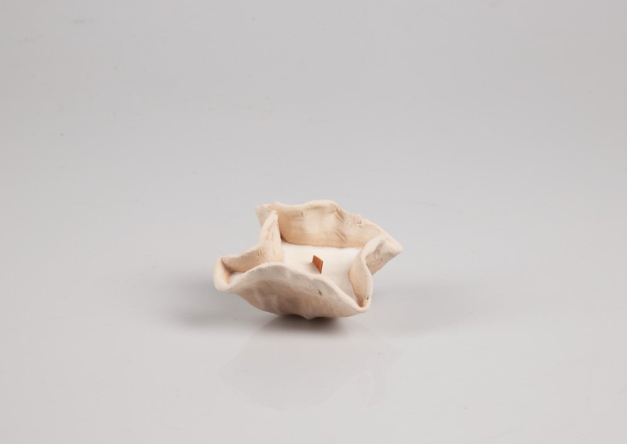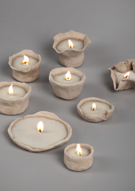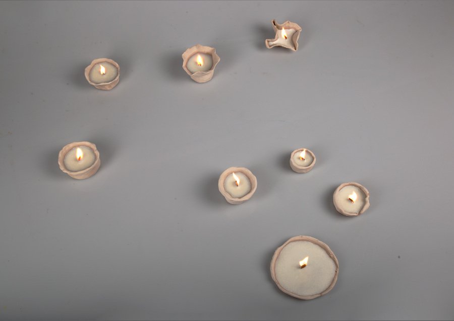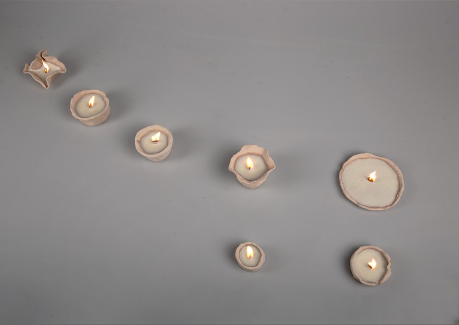 Мой проект — инсталляция свечей ручной работы из глины. Коллекция из восьми уникальных сосудов исследует глину в её настоящем состоянии. Каждый сосуд, от создания до сгорания фитиля, живет в настоящем. Неглазурованный материал и чёрный воск подчеркивают форму и символизируют неожиданные смыслы.