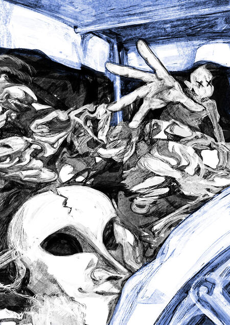 Рисуя вторую иллюстрацию из серии, я обратила внимание на ракурс снизу: он прекрасно работает на неожиданное впечатление.