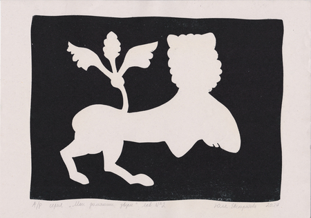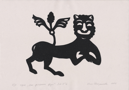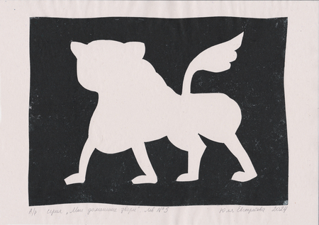 Серия из 10 работ выполнена в технике высокой печати основана на изображениях львов на фасаде Дмитриевского собора во Владимире.