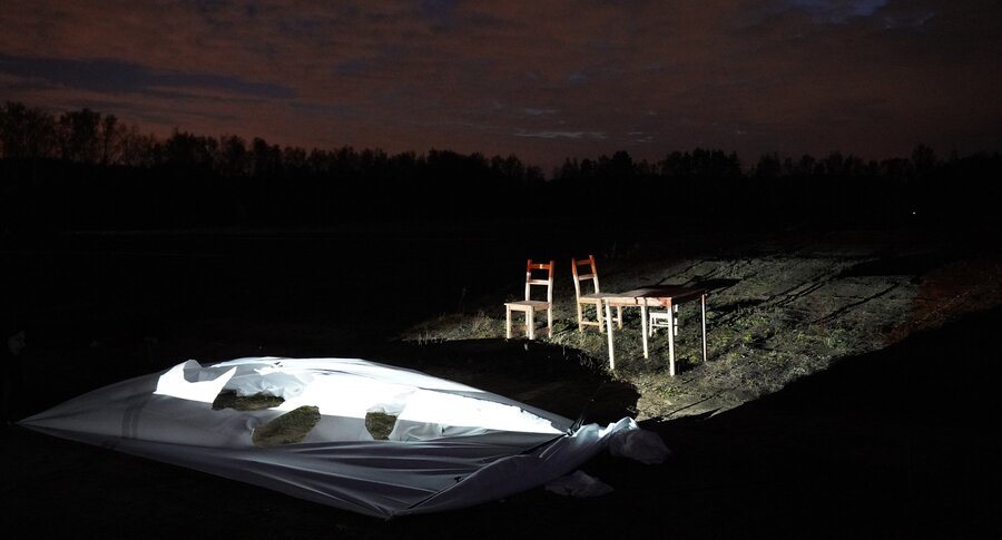 В работе «Под одеяло» Мария Панина продолжает размышление о привязанности человека к земле и об идентичности, которая выстраивается на этой связи. Объект играет на паре «сон — смерть», сочетая в себе уют и тепло с экзистенциальным страхом перед вечностью.
