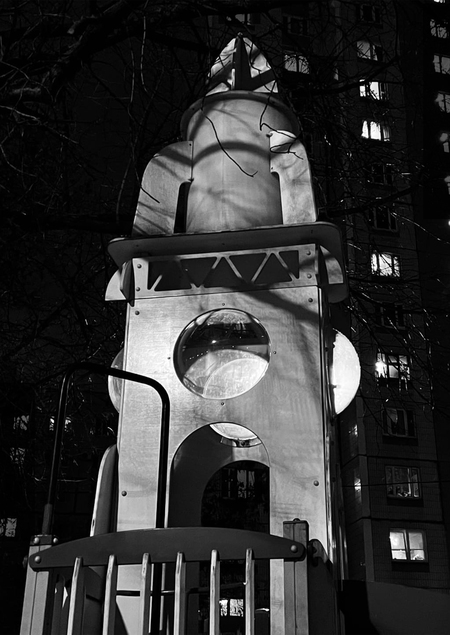 Я решила исследовать необычные современные детские площадки, чтобы визуально прочувствовать эту реконструкцию детства. Новые формы, нестандартные решения взаимодействия с конструкцией, антигравитационные крепления и тематический визуал: всё это сейчас вобрали в себя новые площадки. Такие не все, я акцентировала внимание на самых, на мой взгляд, взрывных решениях.Съёмка выбрана ночная из соображения удобства, плюсом так же является фонарный свет, удачно играющий с конструкцией и подчеркивающий загадочность и атмосферность места.