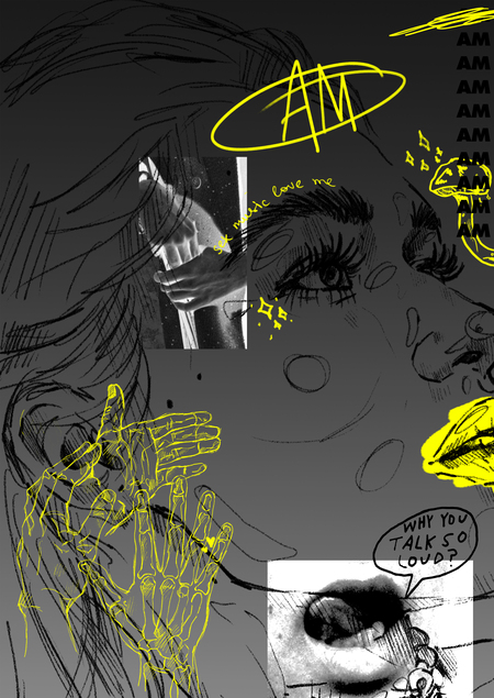 A highway, a road, a story made up of words, images, images and thoughts. The ever-recurring themes of sex, lust, isolation, disappointment and the search for getting high not only from life but also from the voices within oneself.