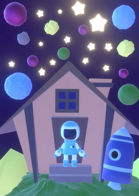 Маленький космонавт, преодолевая невзгоды и преграды летит домой через звёзды.