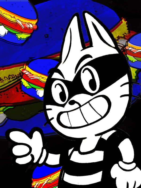 Жора — настоящий воришка, который только и мечтает о новом синем бургере. Стань героем, скорее хватай свой заказ и беги, пока Жора не залез в твой пакет!