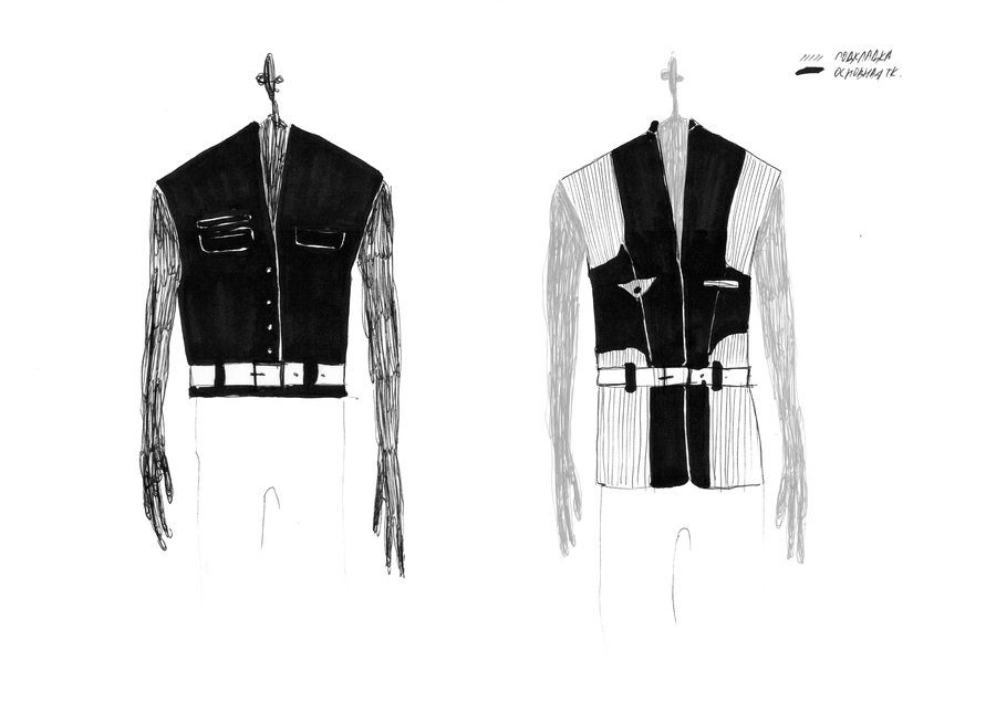 В итоговых эскизах я попыталась соединить пиджак с униформой и приемами, которые я изучила, при этом создать что-то интересное и носибельное.