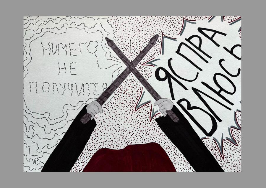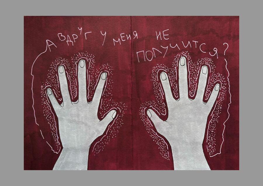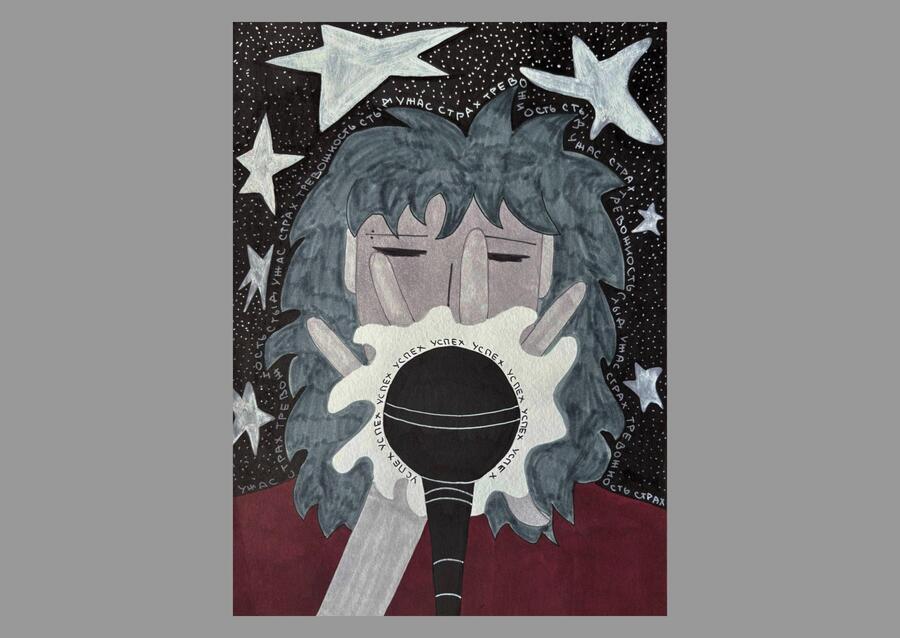 А вот и сам зин! Он раскрывает все чувства главного героя от встречи с друзьями до конца самого выступления. Справившись с паникой, наш герой наконец отпускает страх и уверенными шагами идет к успеху!