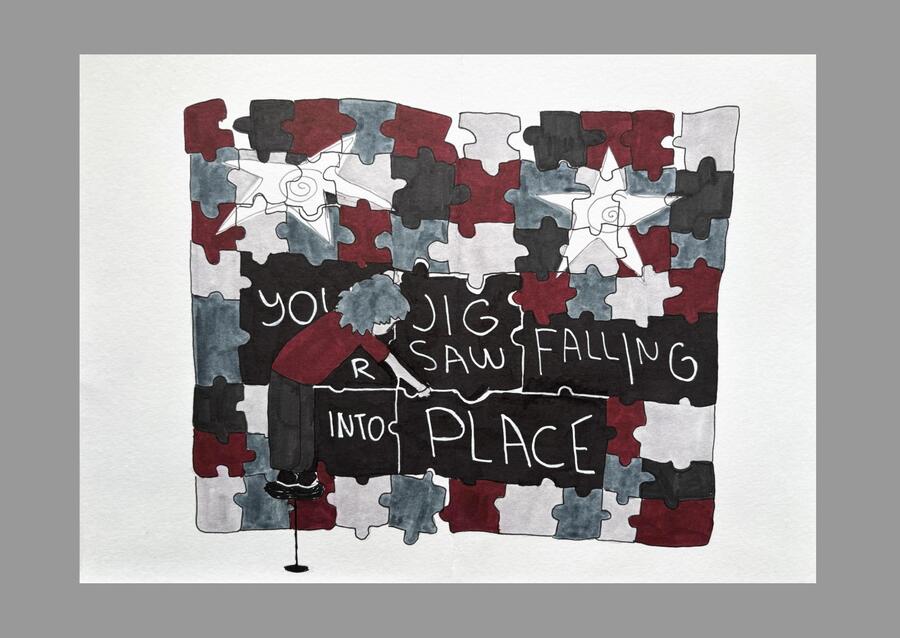 Комикс «Jigsaw of success», что в переводе с английского означает «Пазл успеха», — история группы молодых людей, исполняющих песню «Jigsaw falling into place» в первый раз, что вызывает чувство страха и тревоги у главного персонажа — солиста. Однако публики и сцены не стоит бояться, нужно лишь втянуться в ритм и почувствовать музыку — именно тогда своеобразный «пазл успеха» сложился у солиста и всей группы в целом.