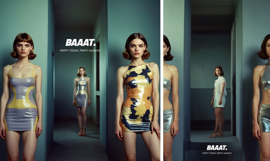 Бренд вАААт — это яркая и эффектная одежда, вобравшая в себя любовь к свободному движению в танце и яркой эклектичности клубной культуры российских 90-х. Бренд создает одежду для танцевальной публики, любящих посещать ночные мероприятия, как вариант проведения свободного времени в конце дня. Главная цель продукции бренда — создание ВАААУ эффекта!