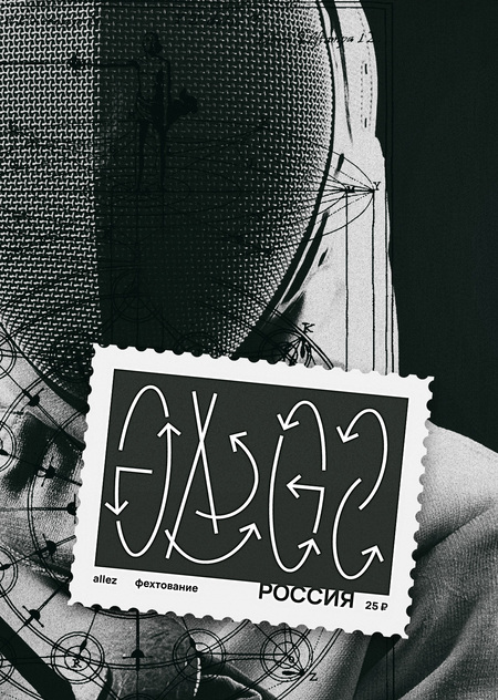 Марки на тему «Коллекция» для опен-колла Школы Дизайна. Они отбирают сохранившиеся французские термины в спортивном фехтовании.