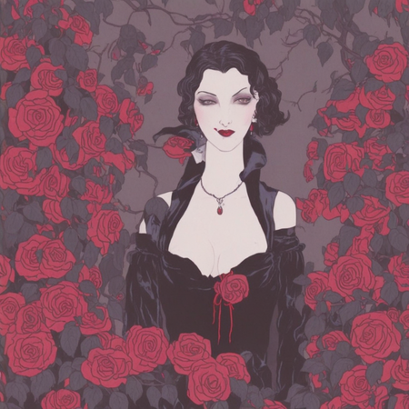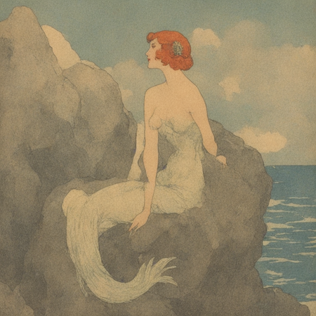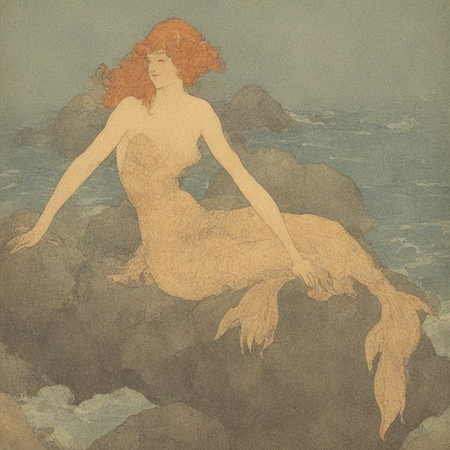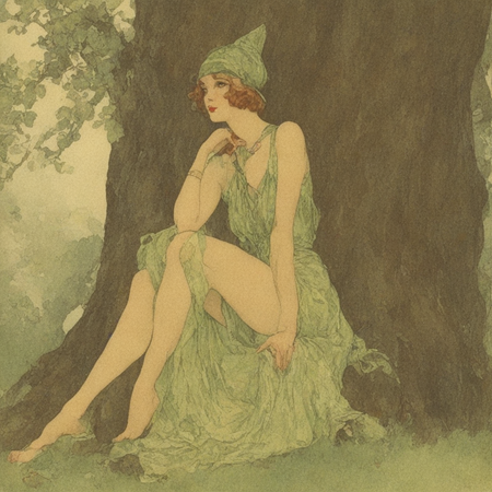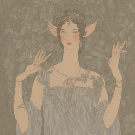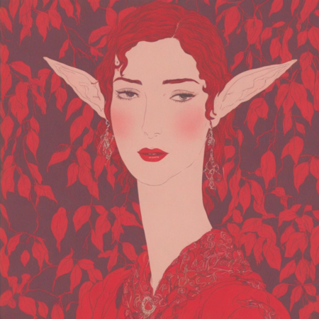 Особый интерес представили результаты генерации фэнтезийных персонажей — эльфийки, русалки и вампирши. Модель хорошо адаптировалась под общий художественный стиль и без дополнительных подсказок удачно подбирала цветовую палитру, соответствующую персонажу. В случае с вампиршей нейросеть сначала использовала более готические и мрачные тона, менее характерные для арт-деко, однако уже при повторной попытке генерации она скорректировала цвета, приблизив изображение к нужной эстетике.